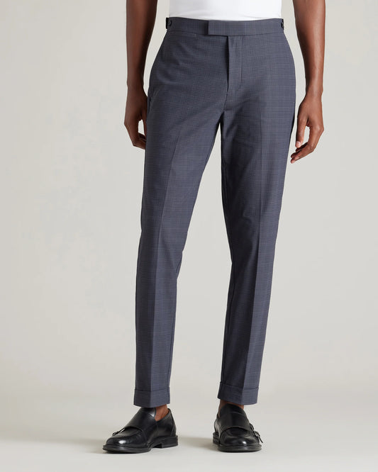 Rhone Blue & Brown Gingham Semi Spread Collar Commuter Shirt