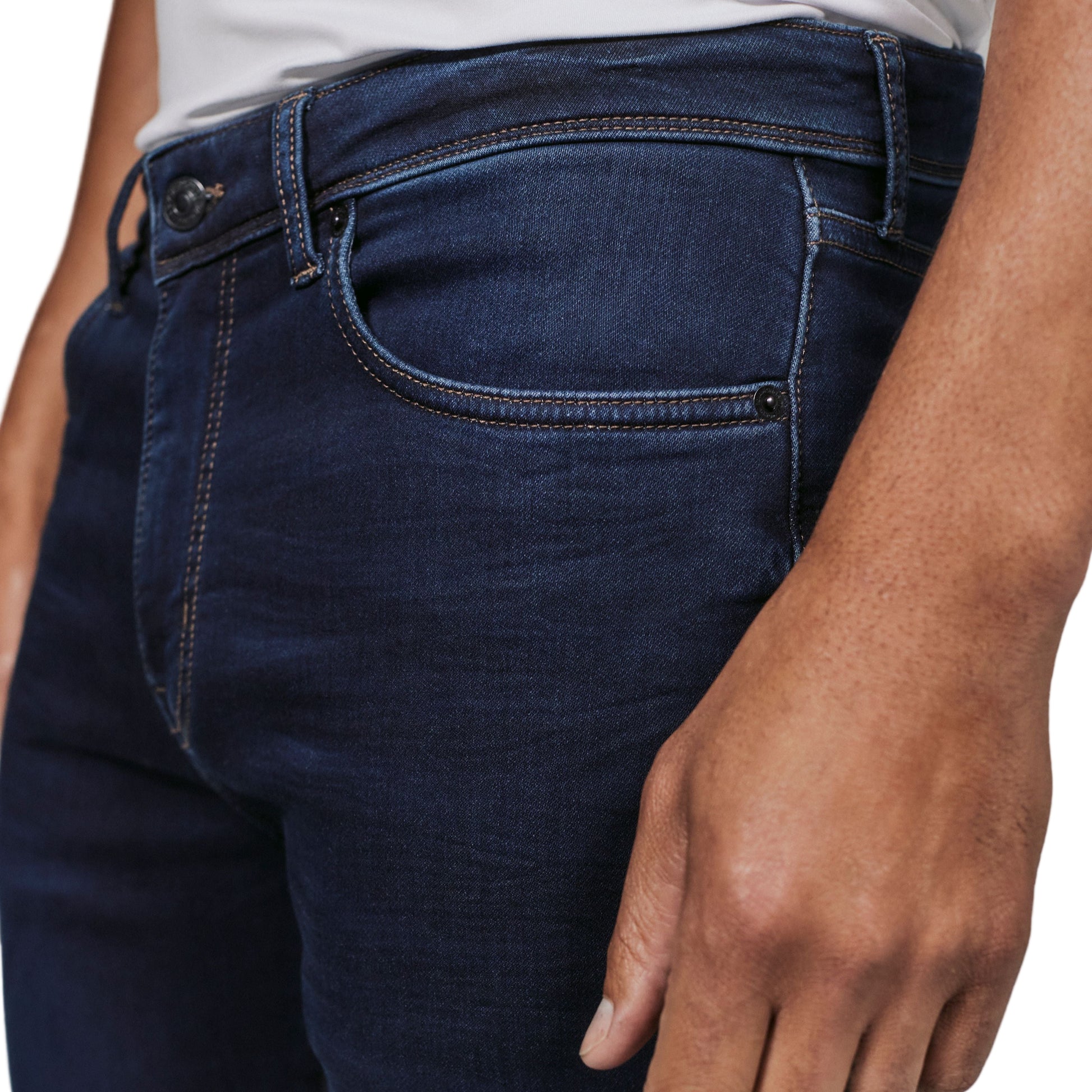 7 Diamonds have combined true indigo yarn with their incredibly soft stretch fabric creating a smarter, softer denim with all the details of your favorite jeans. A Classic 5-pocket silhouette with an athletic fit, built with extra room in the seat, thighs, and legs, achieving a casual tapered look with zero restrictions offering comfort, and signature performance all day long.