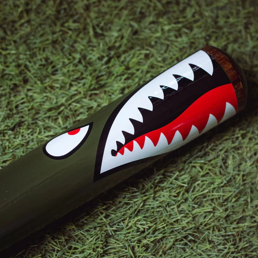 The "Shark Bat” is painted to honor the nose art on Vintage warplanes that flew countless missions over the years to keep our nation safe. Iconic Americana...as American as Baseball.