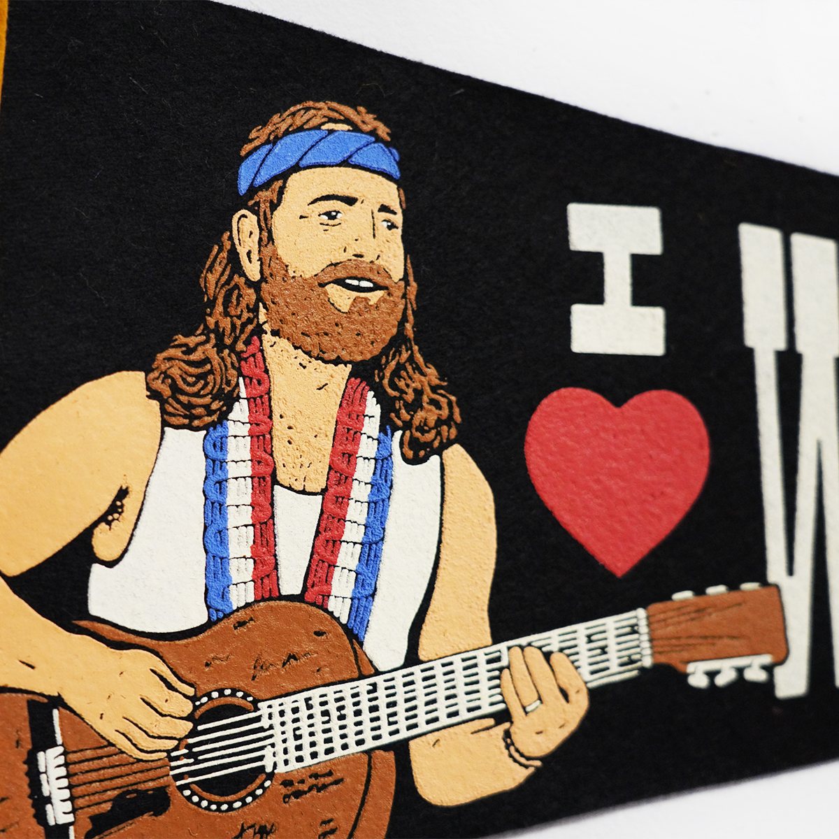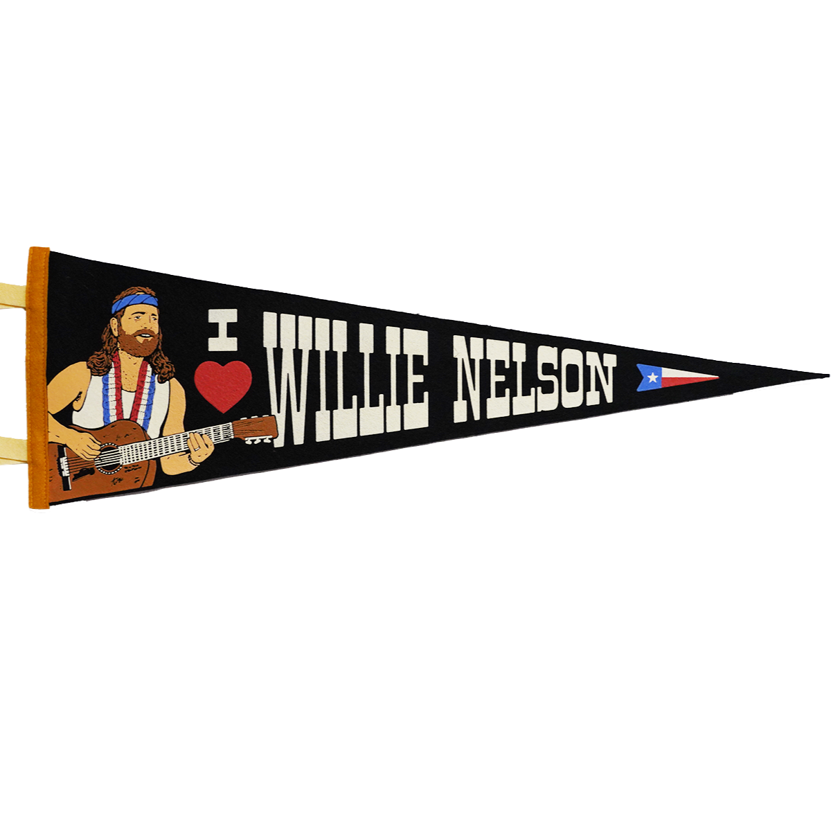 What screams "I love Willie Nelson" better than a pennant that says "I Love Willie Nelson?" Officially licensed pennant for Willie Nelson.