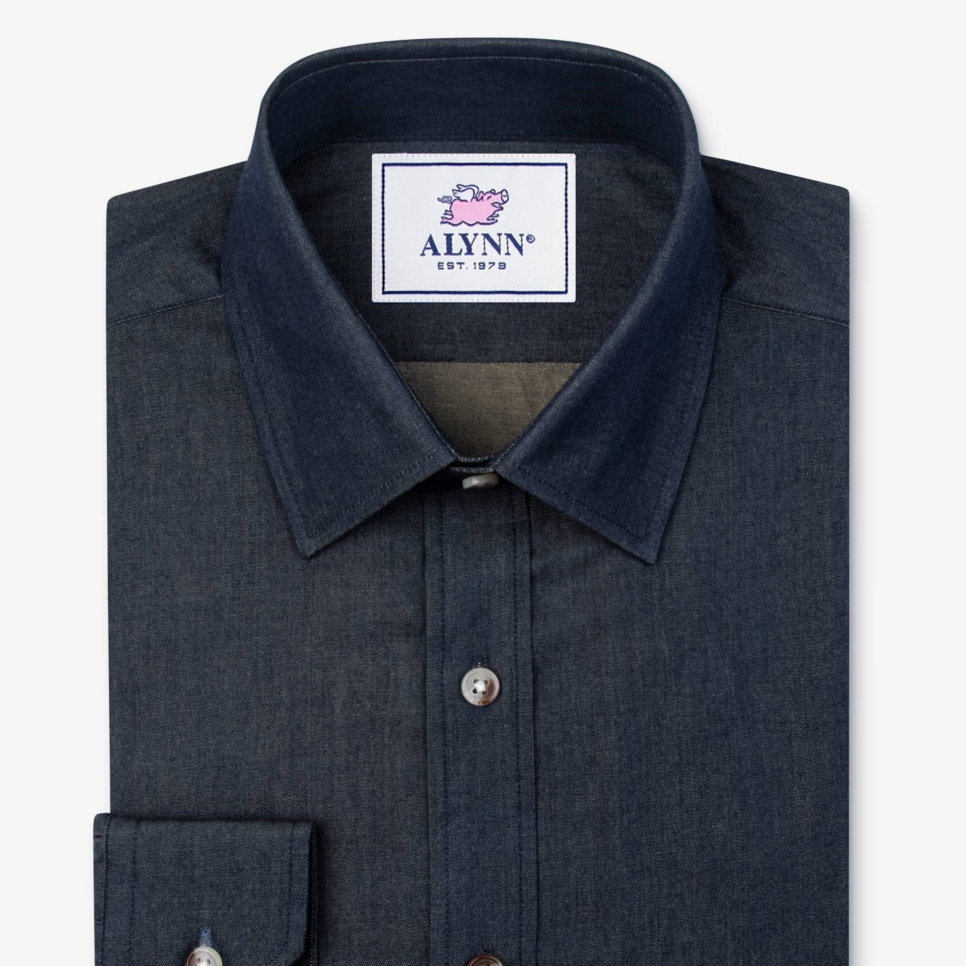 Alynn Liam Dark Denim Untuckable Slim Fit Dress Shirt