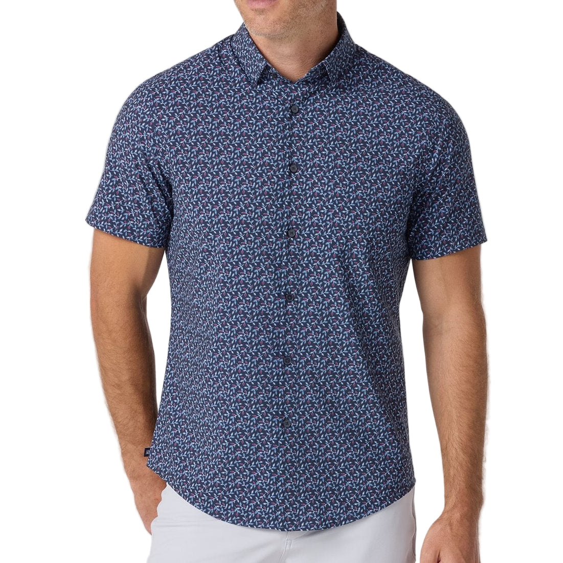 Mizzen+Main Navy Vine Leaf Leeward Short Sleeve Shirt