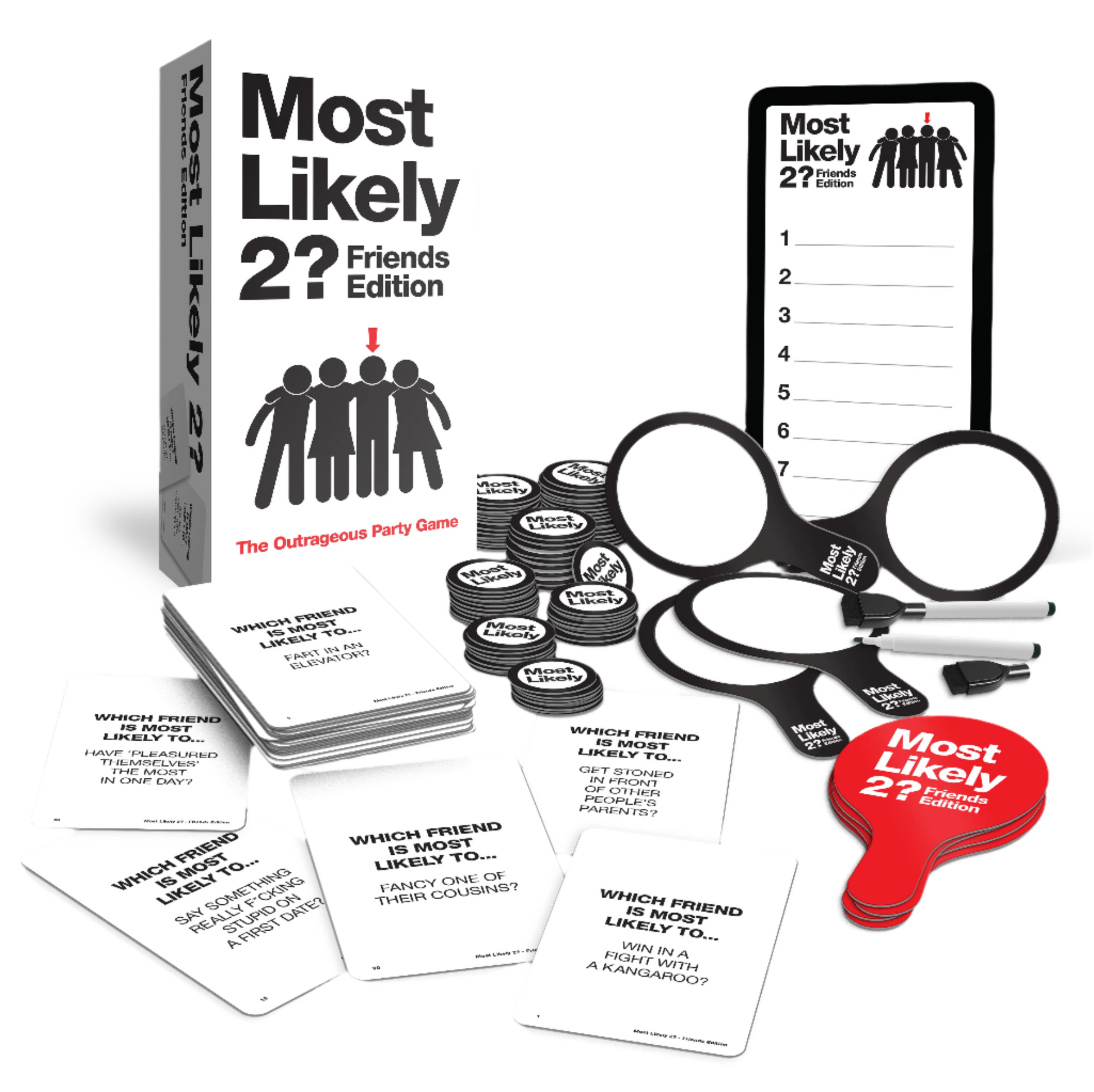 Most Likely 2? Friends Edition is the hilarious adult party game that reveals exactly what your friends think about you! Warning: Explicit content, should only be played by adults 18+.