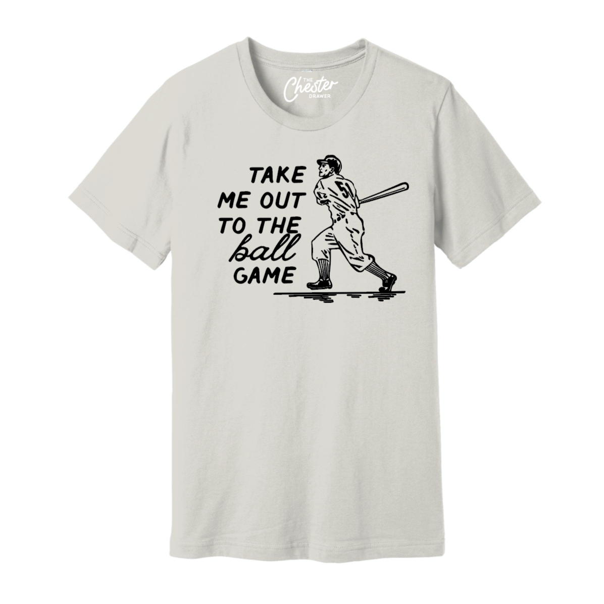 Take me out to the ballgame. The perfect tee for baseball season. Vintage off white unisex tee with black print. We love to pair this with jeans and a ball cap. 100% Airlume combed and ring-spun cotton