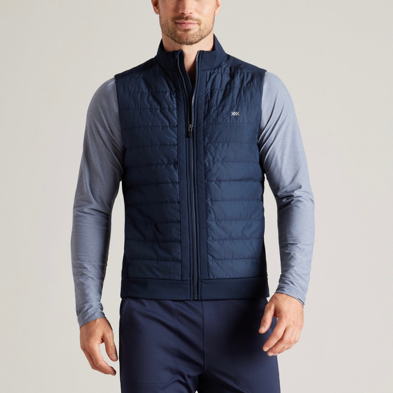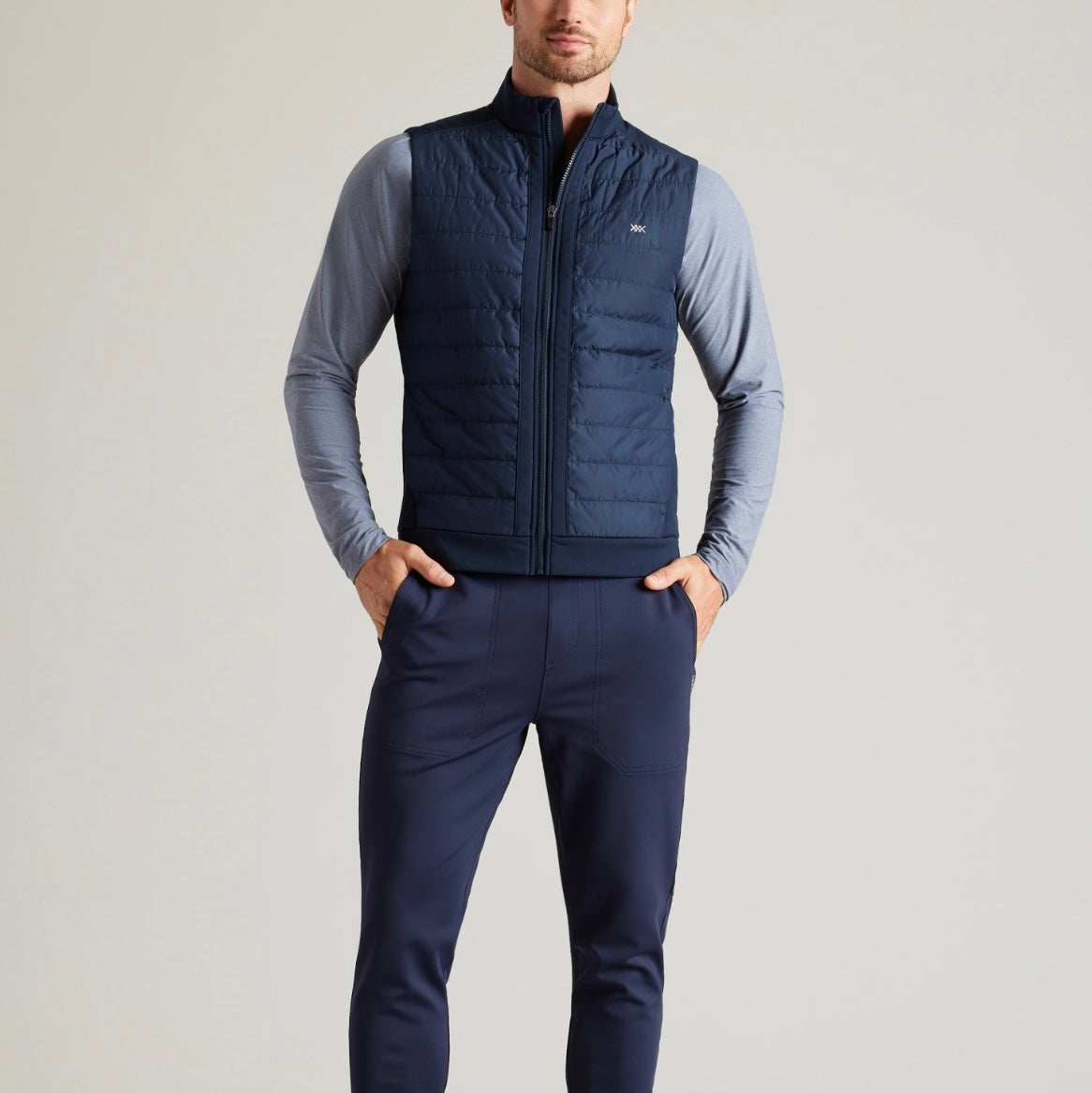 The innovative Alpine collection is made to keep you moving when the temperatures plummet. Built with stretch fleece and weather resistant quilted front panels, this vest provides warmth without weight and protection from the elements. Added reflective logos provide safety in low-light areas and stretch hand pockets are perfect for keeping your valuables on lock.