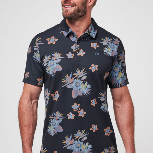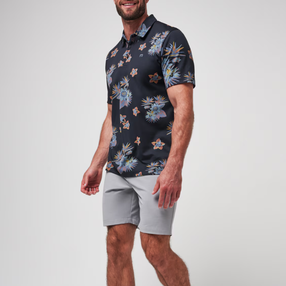 Say aloha to the SECLUDED ISLAND polo. Designed with a dark background and vibrant color pops from super-soft pima cotton, consider this the mysterious, cool guy of floral printed polos. (Mysterious brooding at conversations about playlists sold separately.)