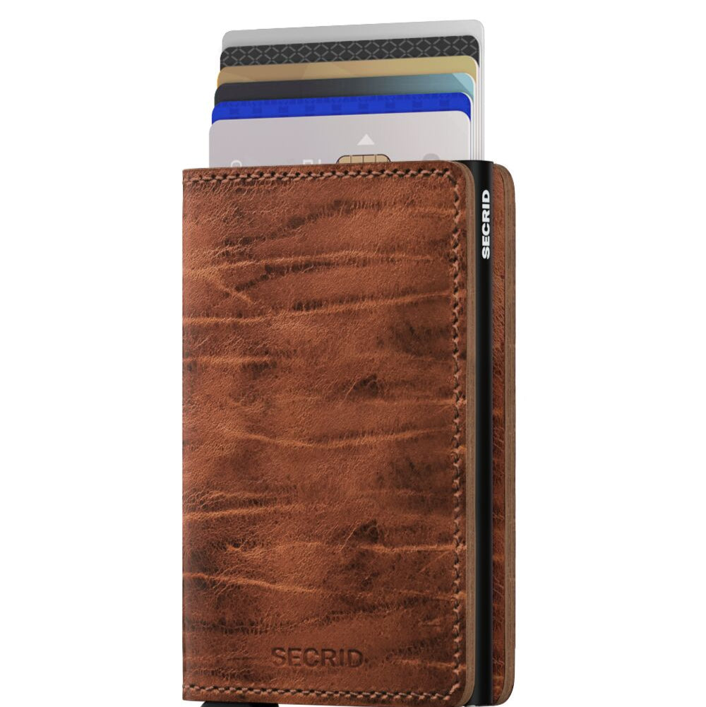 Its slim profile allows the Slimwallet to fit perfectly into any pocket. The open exterior is designed extra wide to accommodate cards, banknotes and receipts. The Cardprotector mechanism enables you to slide out cards with a simple motion, while the aluminium construction protects your cards from bending, breaking and unwanted wireless communication. A maximum of 4 embossed or 6 flat plastic cards. Up to 6 extra cards in the exterior wrap.