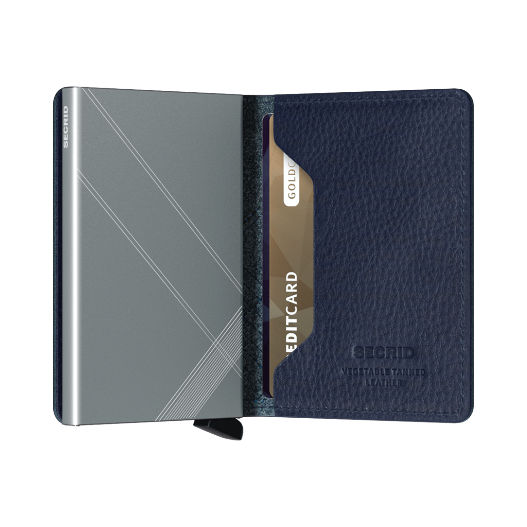 Its slim profile allows the Slimwallet to fit perfectly into any pocket. The open exterior is designed extra wide to accommodate cards, banknotes and receipts. The Cardprotector mechanism enables you to slide out cards with a simple motion, while the aluminium construction protects your cards from bending, breaking and unwanted wireless communication. A maximum of 4 embossed or 6 flat plastic cards. Up to 6 extra cards in the exterior wrap.