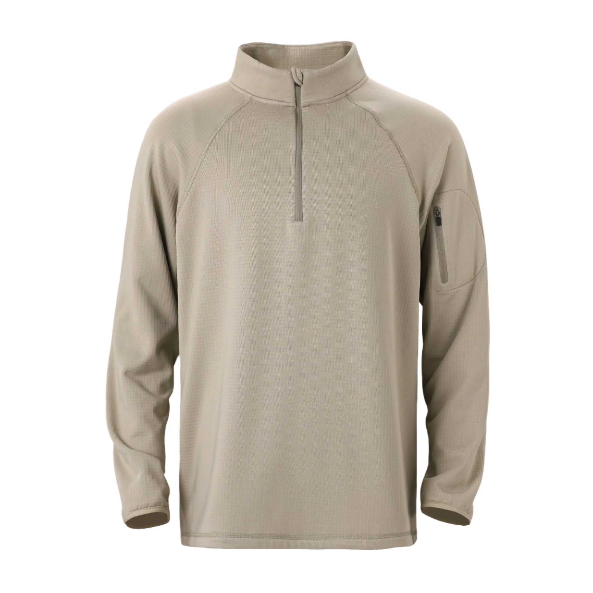 This piece has two side stash pockets. The waffle texture is breathable on its own but locks in heat when layered.