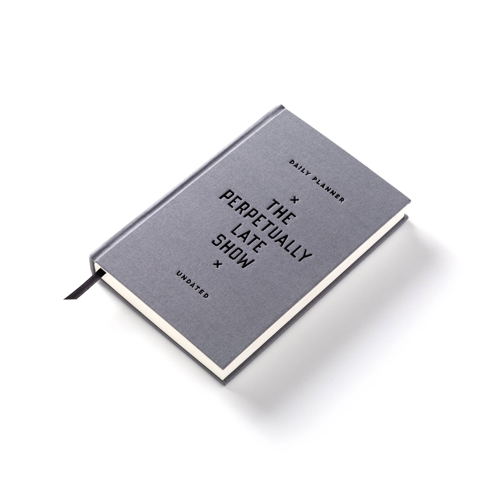• Features a cloth-bound cover with embossed 'The Perpetually Late Show' artwork.