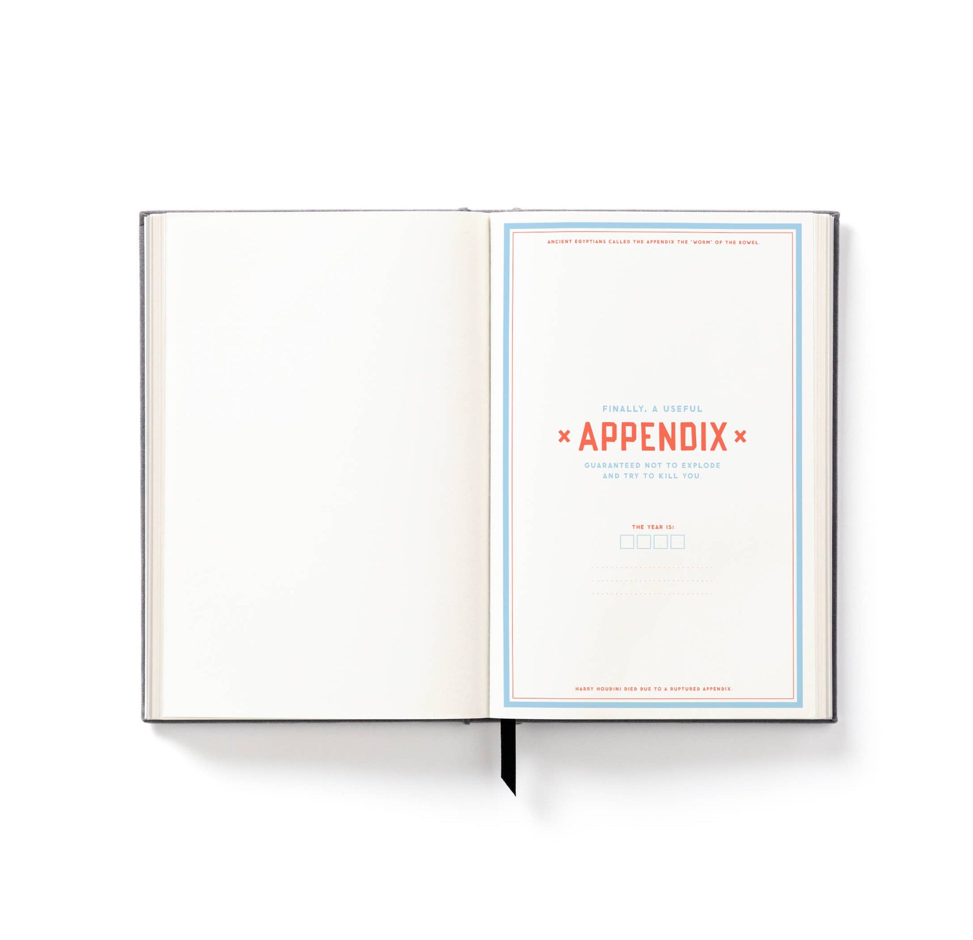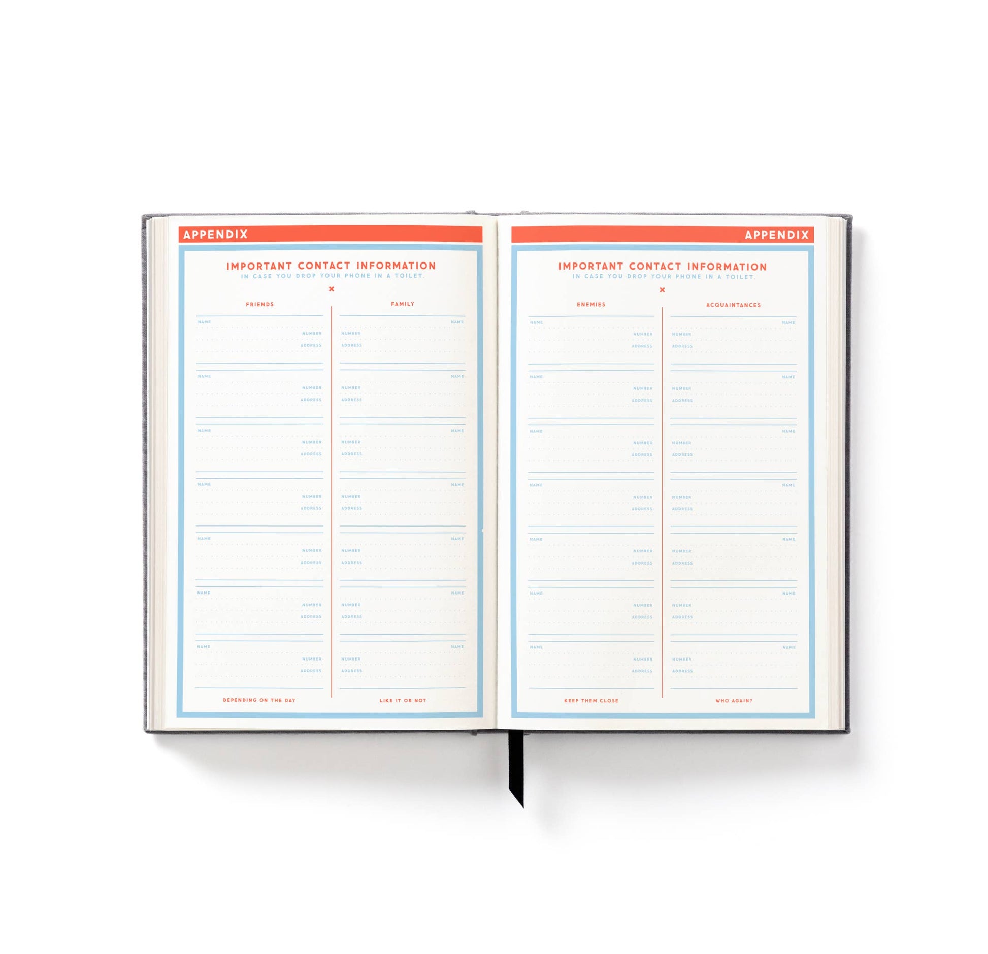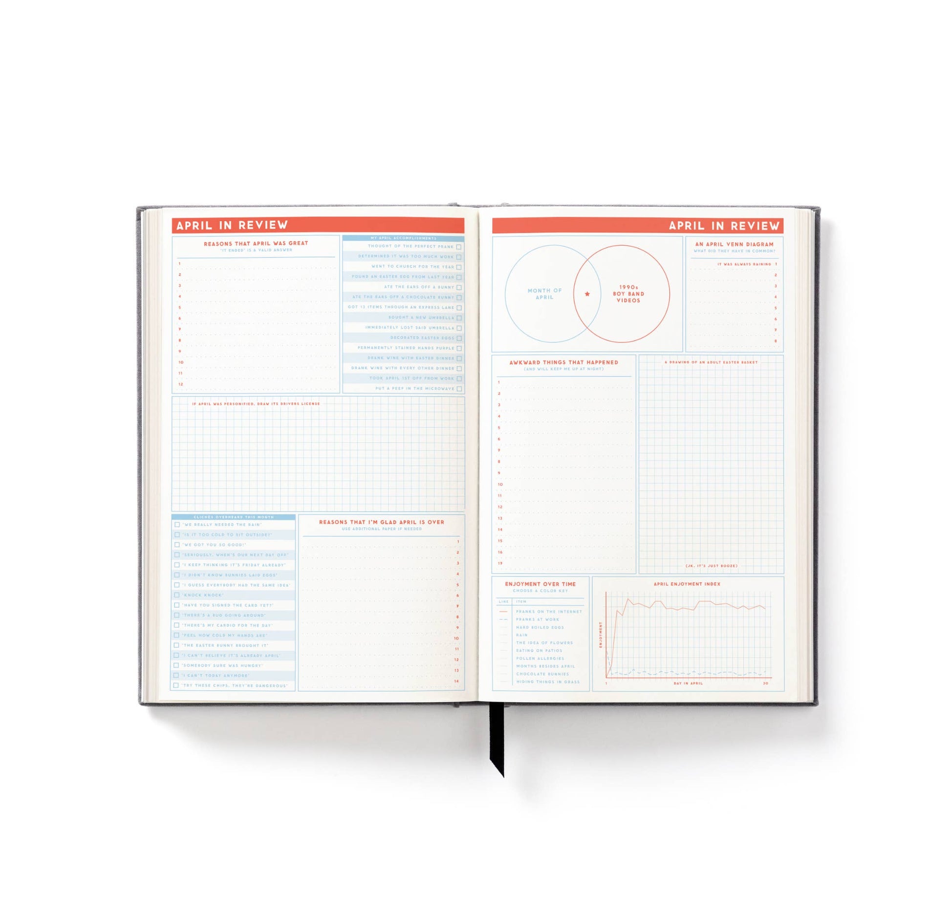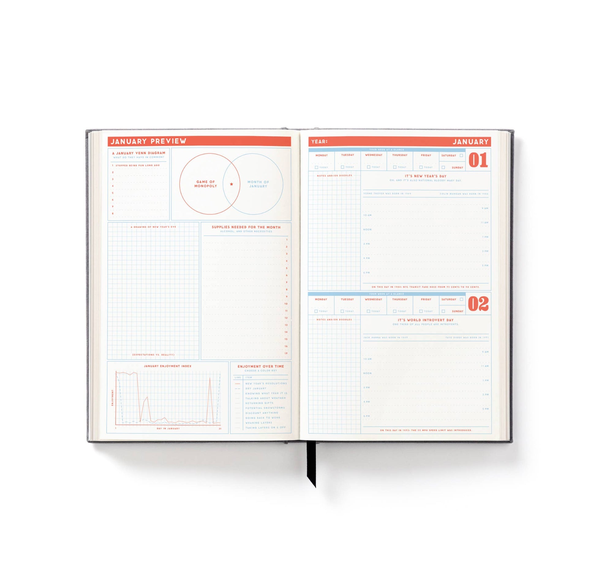 This vintage-inspired, cloth-bound daily planner by Brass Monkey is technically undated...but that's really selling it short. It's more like...'un-yeared.' See, we did all of the hard work for you. We've already put in all of the dates, the fixed holidays, and tons of extra stuff like daily random holidays (it was Work Like A Dog Day when we wrote this, ironically), celebrity birthdays, and other bits of trivia.