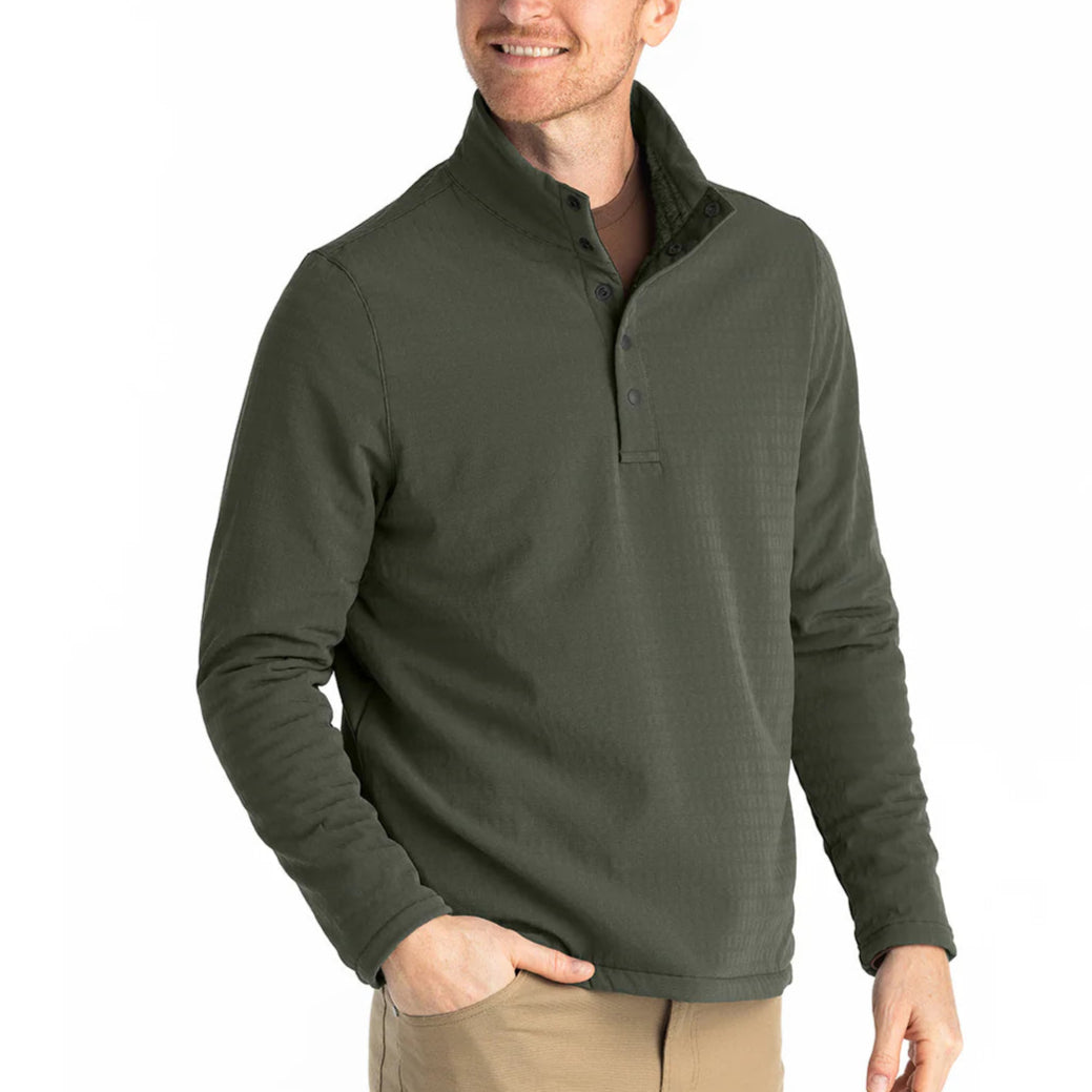 One of the most coveted styles around Free Fly HQ, the Gridback Fleece Snap Pullover is an absolute winner—an innovative combo of classic fleece comfort and streamlined weather-resistance. Our product team worked their fabric sorcery and outfitted the interior with an indulgently soft, high-pile fleece that traps and retains heat throughout gridded channels. They finished it with a bonded, stretch-weave shell that keeps out rain and wind unlike any other fleece. Wear it as an outer layer on brisk hikes or early morning boat rides, or pair it with our Stretch Canvas Pant for your next beer garden visit.