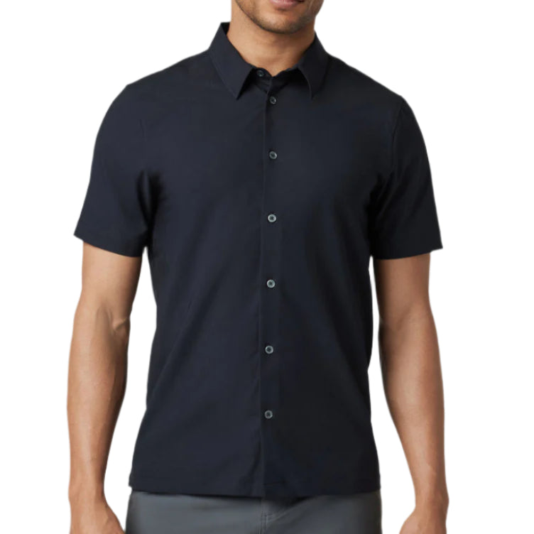 Light, stretchy and smooth on the skin, this performance woven shirt combines a tailored shape with endless wearability, made from 100% recycled material. This short-sleeved button down is designed for days when you want to look and feel like a premium feature.